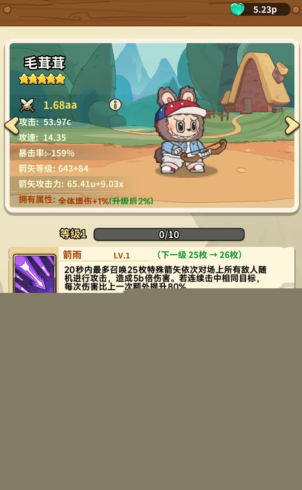 拉布布定位为远程物理输出型五星英雄,手持长弓,技能设计强调持续性与叠加成长性。其一技能【箭雨】可在20秒内最多召唤25枚特殊箭矢,按顺序对全场敌人逐个打击;若连续命中同一目标,每次伤害均在前次基础上额外提升。二技能【隔山打牛】则赋予普攻穿透能力——当普通攻击命中时,有一定概率穿透当前目标,对其后方所有单位造成全额伤害。