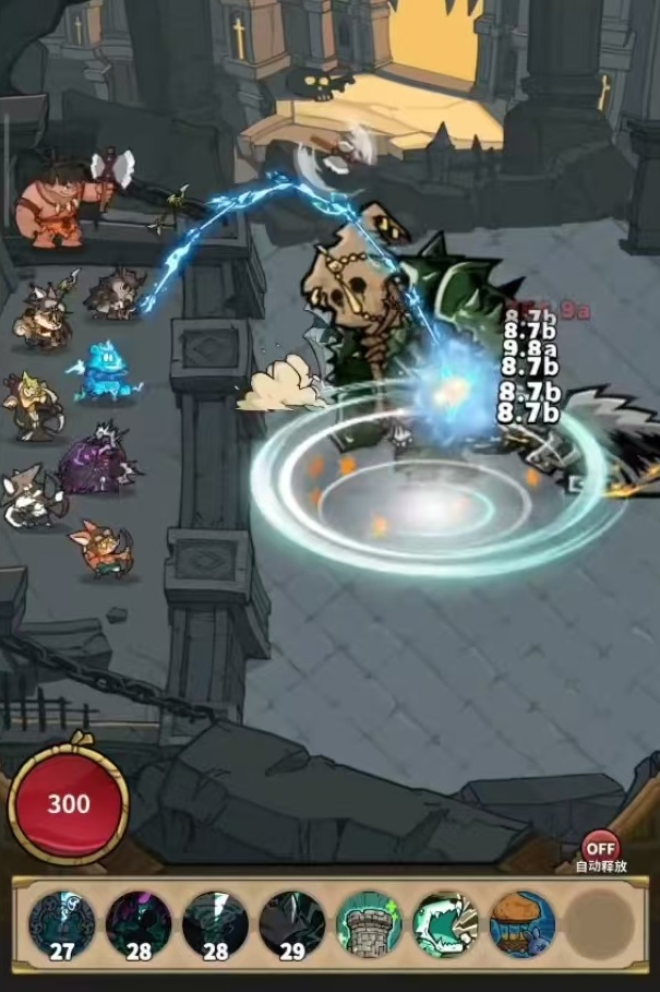 值得注意的是,拉布布的主动技能伤害具有独特结算逻辑:不依赖虎女的增伤效果,不参与主动技能倍率加成,不受老虎平均最高箭等级影响,亦不享受鳄鱼被动或城墙远距离增伤加成。其伤害仅由所佩戴的箭等级直接决定。但可稳定获得闪电、刺猬两类增益效果,并能与城墙皮肤+沐波组合产生的眩晕状态联动,触发额外伤害加成。实战中推荐采用高等级猴子复制策略:将拉布布置于首格触发复制,随后切换其他英雄部署,以最大化其技能覆盖率。