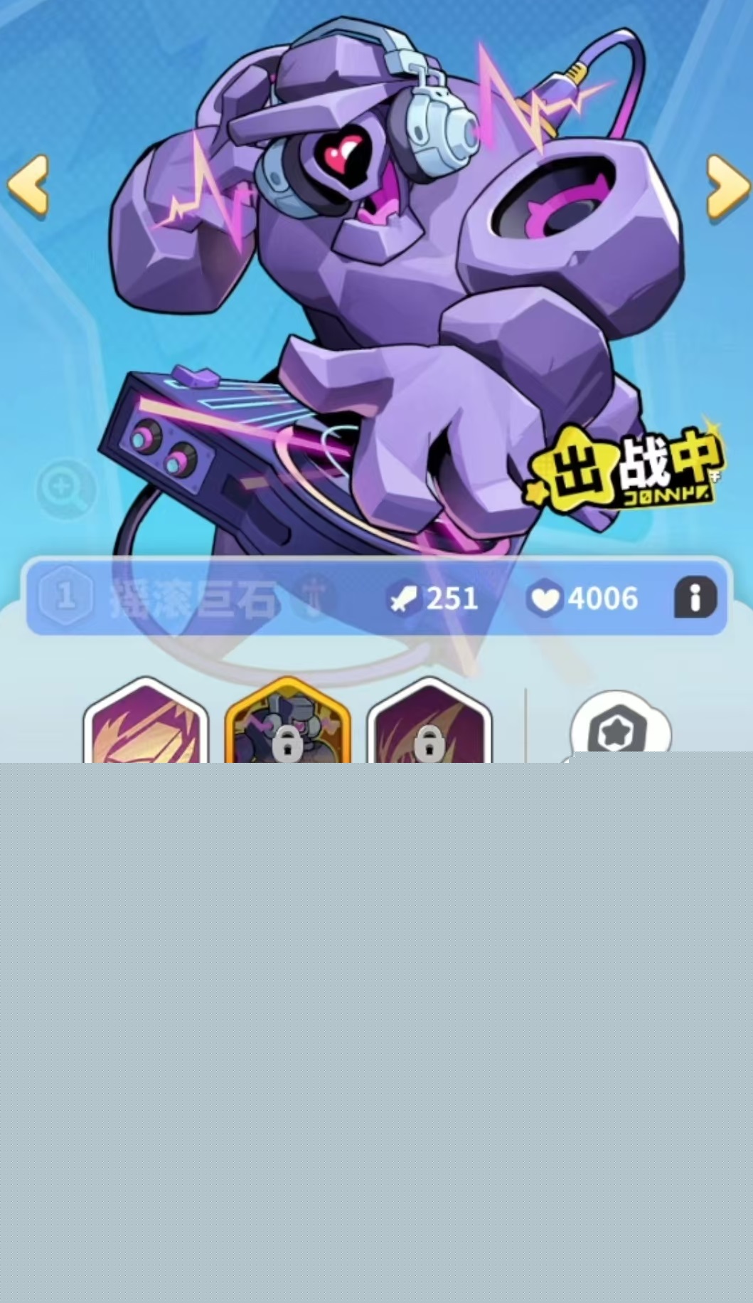 游戏采用三角形布阵结构,其中顶端位置固定为近战型战士,承担抗压与范围控场双重任务。推荐初期使用摇滚巨石:其技能“三起扇形音浪”可对前方扇形区域造成多段伤害;每30秒释放的“摇滚小子”具备大范围击飞与高额AOE伤害;当自身首次血量跌破60%时,自动触发“飞天大锤”,实现群体击飞并获得伤害减免效果。中后期可根据关卡需求替换为关羽、亚瑟或海拉等更具针对性的前排人选。