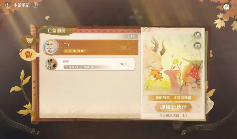 5、加点随着养成次数增加,点击迎接新伙伴后就可以领养到第二只巨兽了
