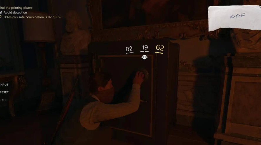 四海兄弟故乡保险箱内藏有贵重物品,需要输入六位数的密码才能开启,密码线索通常可以在附近的笔记上找到。其中第3章-柠檬园密码为10-20-30,第3章-扣押场密码为21-10-08,第6章-布兰卡缇密码为00-01-02,第6章-马里诺密码为28-34-12,第6章-迪阿米科密码为02-19-62。