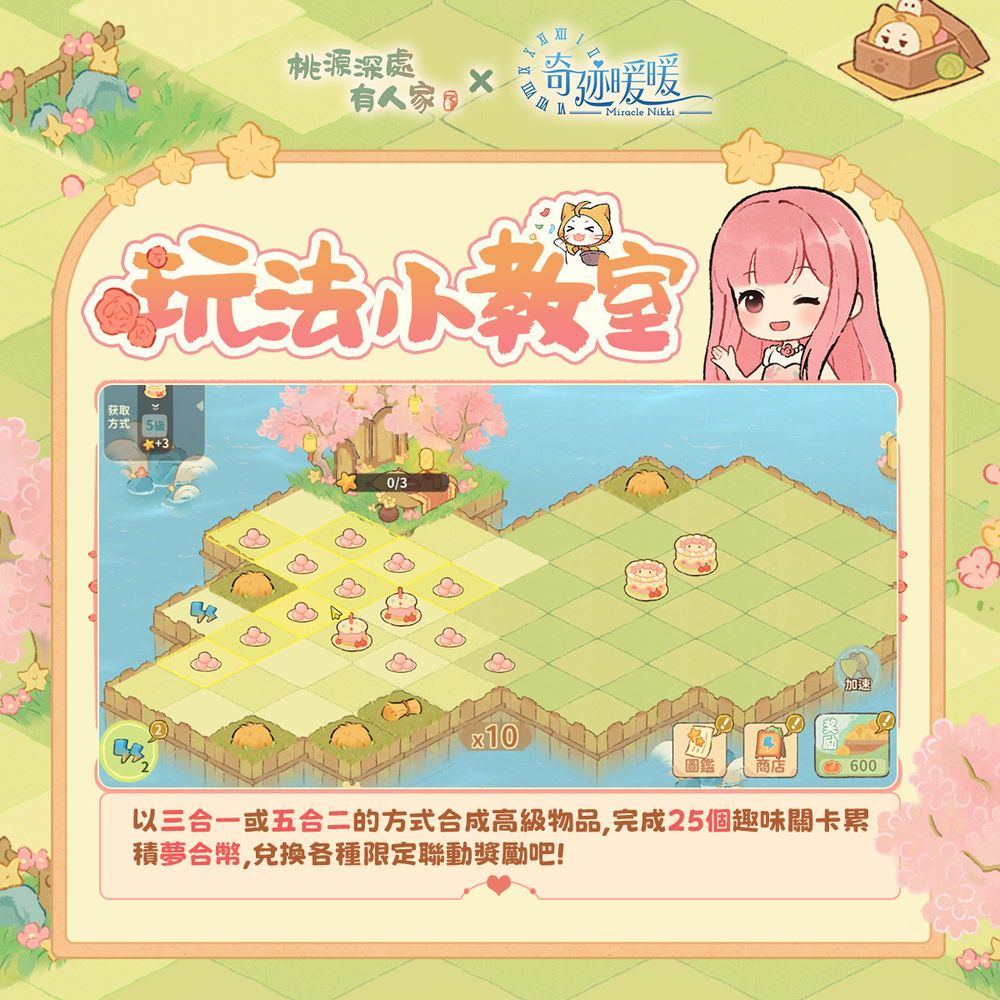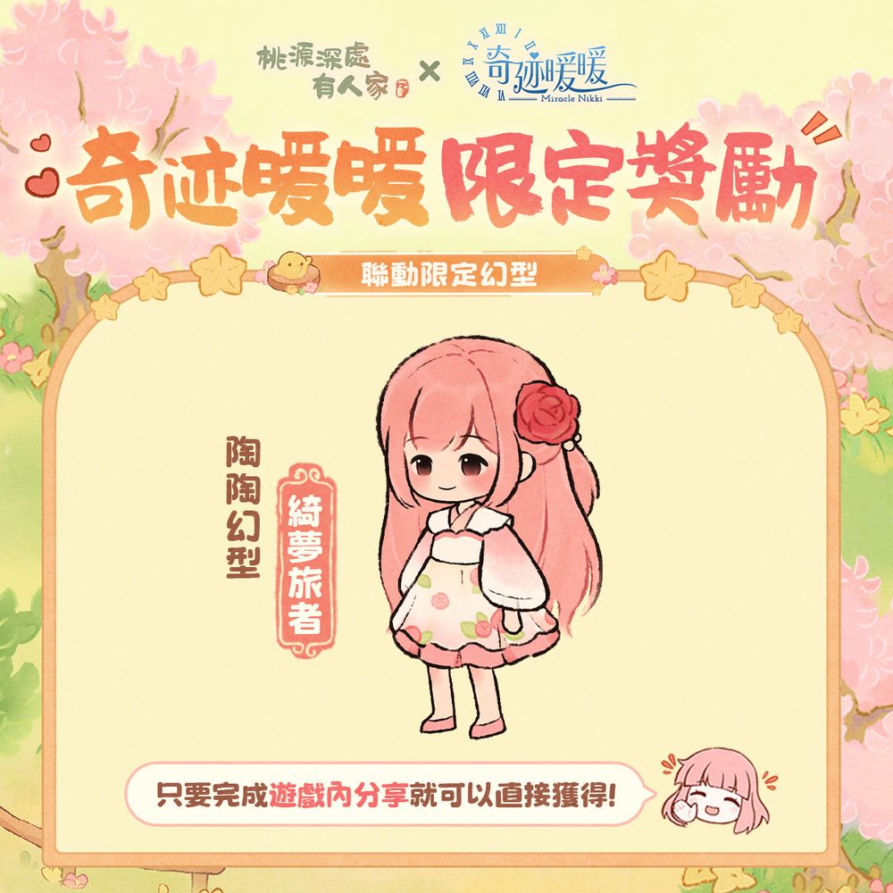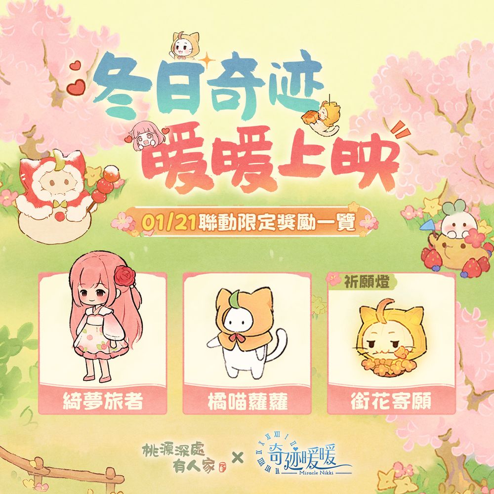《桃源深处有人家》与《奇迹暖暖》联动盛大开跑,与暖暖、大喵一起暖暖过冬吧!不论你是资深的《奇迹暖暖》玩家、又或是新加入《桃源》的萝卜粉丝,快趁著这次加入桃源,蒐集《奇迹暖暖》联动限定奖励,并打造属于自己的专属主题家园,一起共度这个温暖又梦幻的冬日篇章!更多详细资讯,请关注《桃源深处有人家》官方粉丝团!