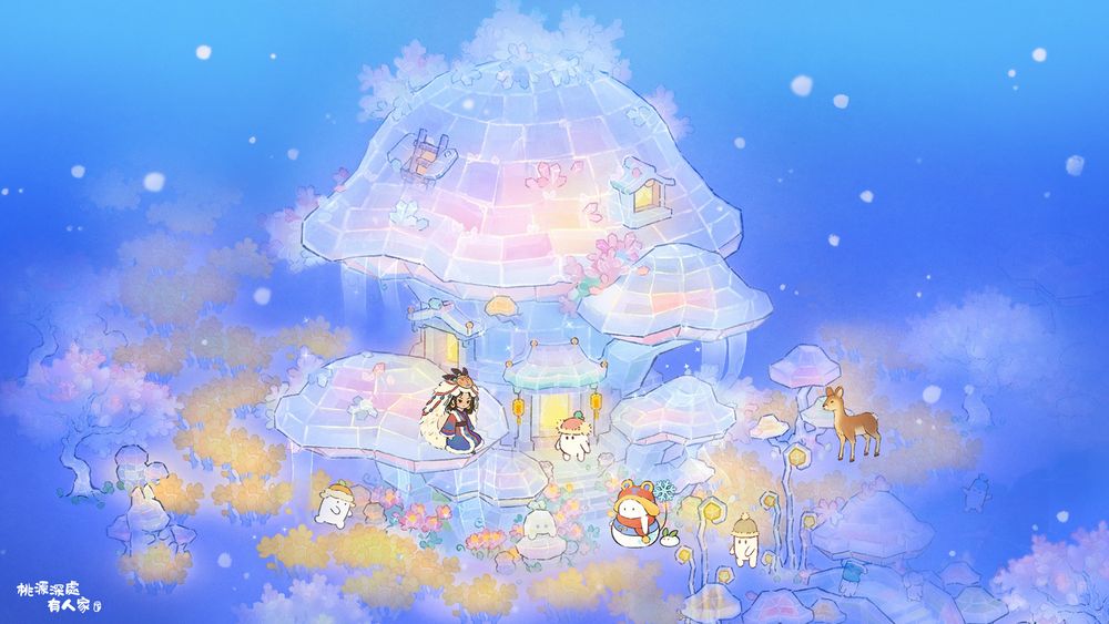 桃源首座「双型态建筑」—— 蘑菇城堡【蕈华釐苒】正式登场!此建筑在雪景之下是高冷梦幻的冰雪城堡样貌,但当萝萝山转换其他季节时,建筑也会随之转变为生机盎然的可爱蘑菇小屋,风格反差惊喜满满。