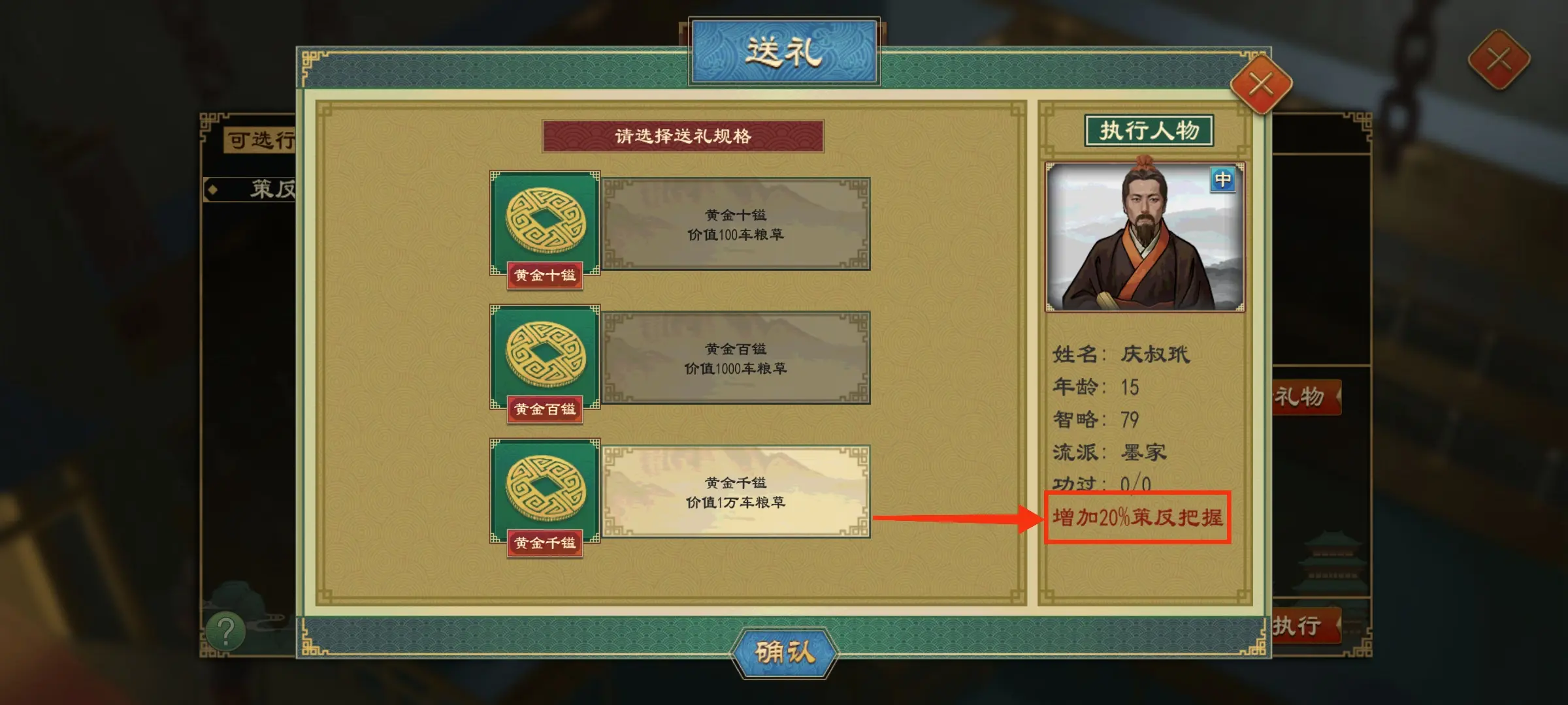 这些就是能影响到策反把握的各个因素了,当然还有一个礼物增益,这个最后再讲