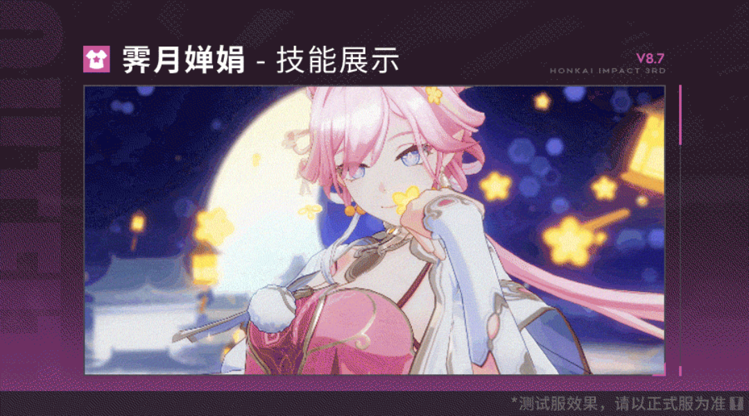 崩坏3V8.7前瞻全新服装霁月婵娟,即将到来的8.7版本中将新增嗨♪爱愿妖精♥适用服装「霁月婵娟」、逆命魔龙·降临!适用服装「甘甜帷幕」、破弃孤光·逐影适用服装「燃灯炽昼」