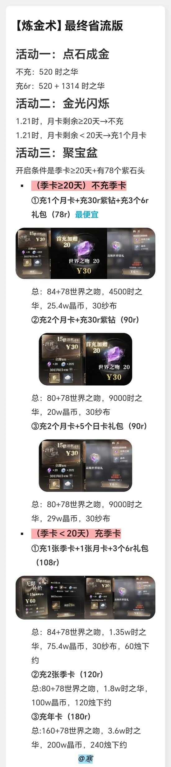 再进阶就是1.21更新后,季卡≥20天,可解锁第3个活动,然后凑78个世界之吻参与翻倍活动