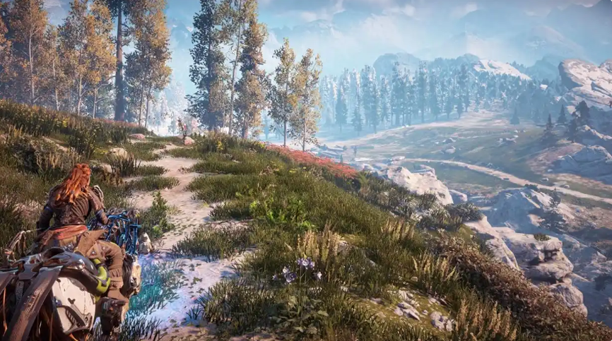 这个女婴就是我们的主角埃洛伊,在养父的抚养下,埃洛伊从小学会了各种生活技能,还有击杀机械怪兽。是的,在这个时代野外到处都是各种没有人知道从哪里来的机械怪兽。有一天埃洛伊在野外探索时不慎掉入一个坑洞,得到了一个不属于这个时代科技能有的东西,它可以感知周围的世界,可以看见机械兽的弱点,这个设备叫做focus。也是驱动我们的埃洛伊开始旅途的起点。