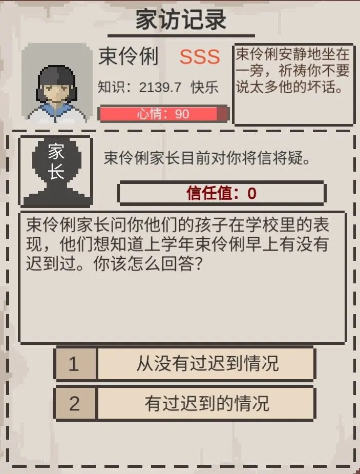 2、家长不在家,是否等待:等待-10体力、+信任;不等待不加信任