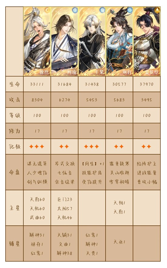同系密探必须下拉,徐庶伤害要够。