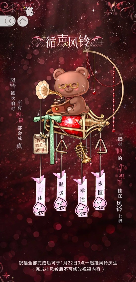 预计活动第五天凌晨12点(第四天最后一分钟后)挂完风铃可拿到活动专属衣服[永叙时]