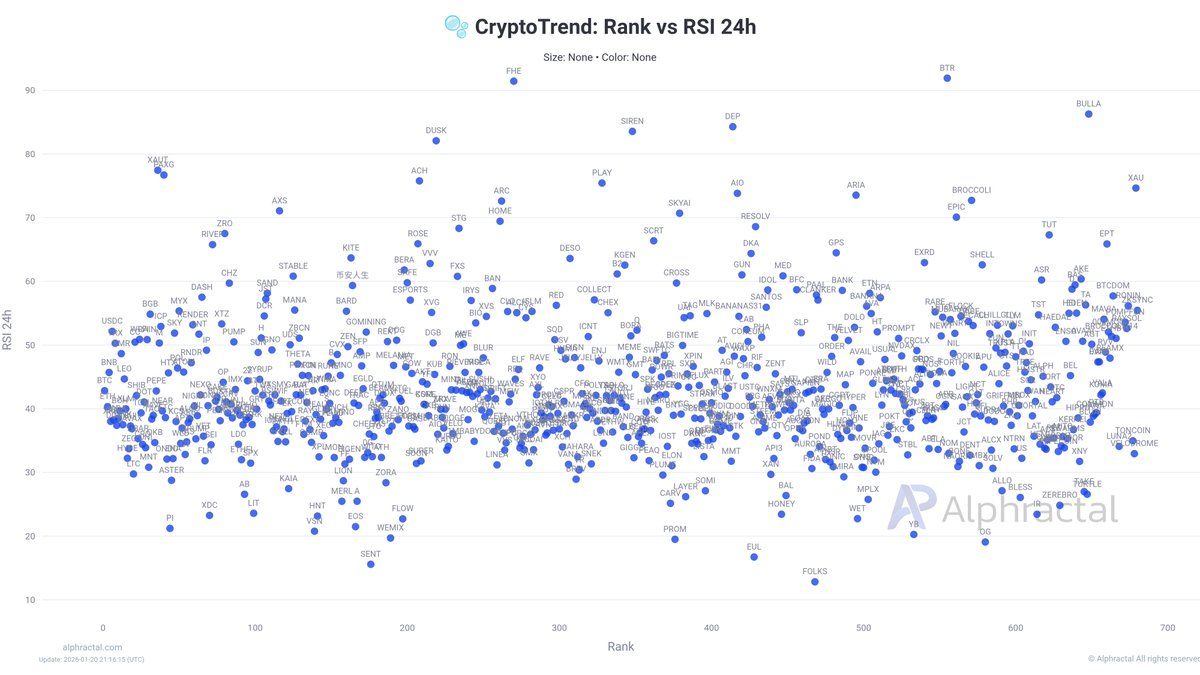 "多数山寨币日线RSI低于50,显示抛压沉重。加之全市场24小时清算/持仓比高企,表明过去24小时大量交易者被强平——这是典型的去杠杆与市场压力环境。"