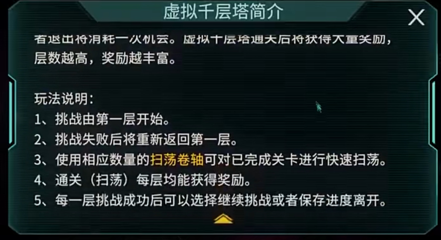 千层塔是一座逐层递进的虚拟高塔,共设数百层,每提升一层,奖励丰度与难度同步增长。其基础规则如下:1. 挑战必须从第一层起始;2. 单次挑战失败后,进度清零并重置至第一层;3. 已通关层数支持使用扫荡卷轴进行一键扫荡,节省操作时间;4. 每层通关均可领取对应层级的专属资源奖励;5. 成功通关当前层后,玩家可自主选择继续向上挑战或保存当前进度离场。