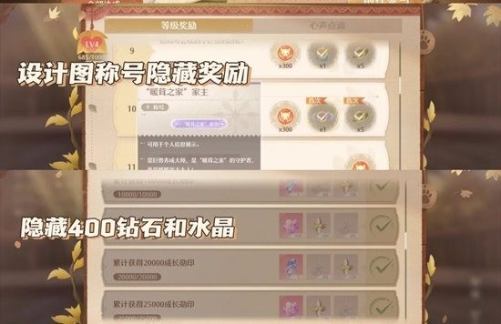 奖励包括:“暖茸之家”称号和设计图(好感度)