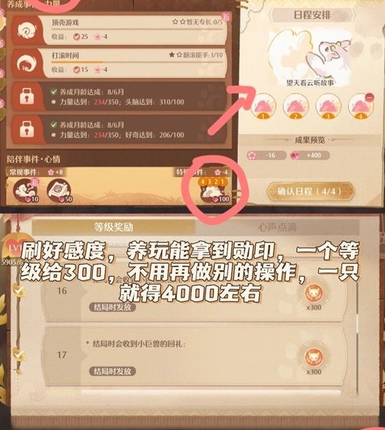 原因:第一只就会获得4000左右的勋印,以及拿完好感度达到10级送的称号,设计图等奖励