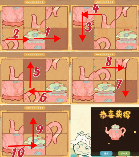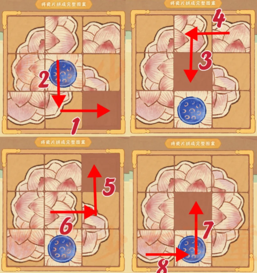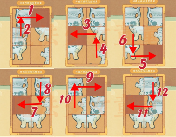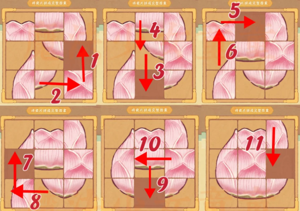 桃源深处有人家中的新甲2阶需要玩拼釉花华容道小游戏,过关后可以获得奖励30叮当、300月亮和手持,全部通关奖励仅自己2阶才能玩,游戏一共有12个关卡,下面是各个关卡的通关方案内容详情!
