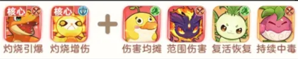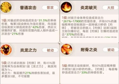 1、小炎龙高额的群体伤害以及叠加灼烧并且引爆的机制。