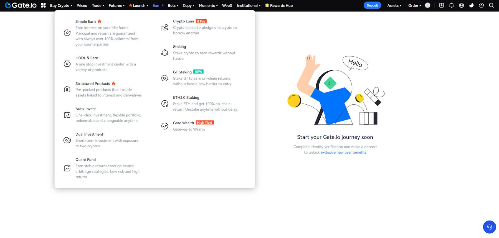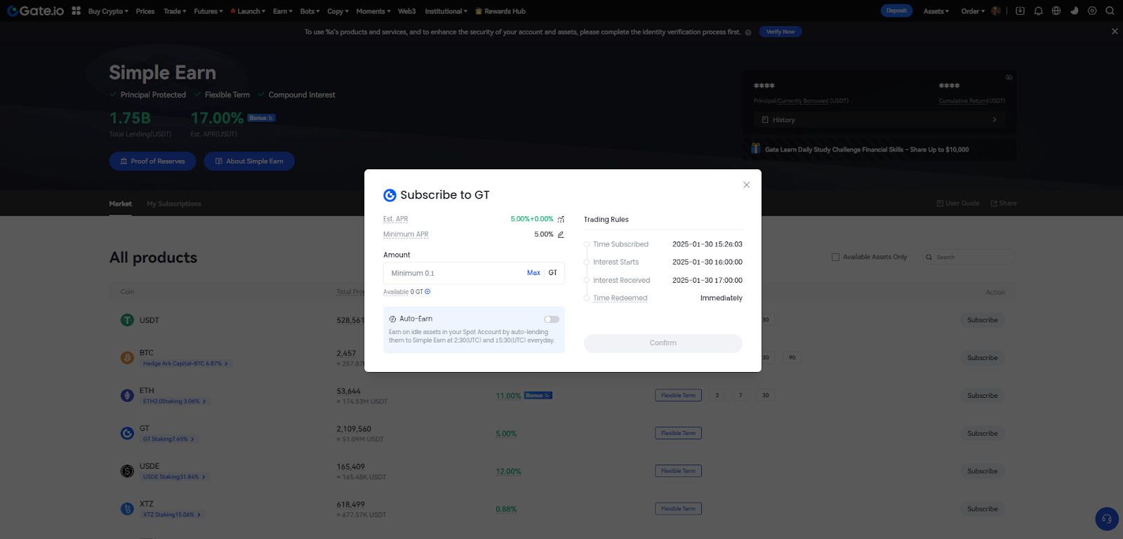 a) 访问Gate.com仪表板上的“Earn”选项卡,并点击“Simple Earn”。