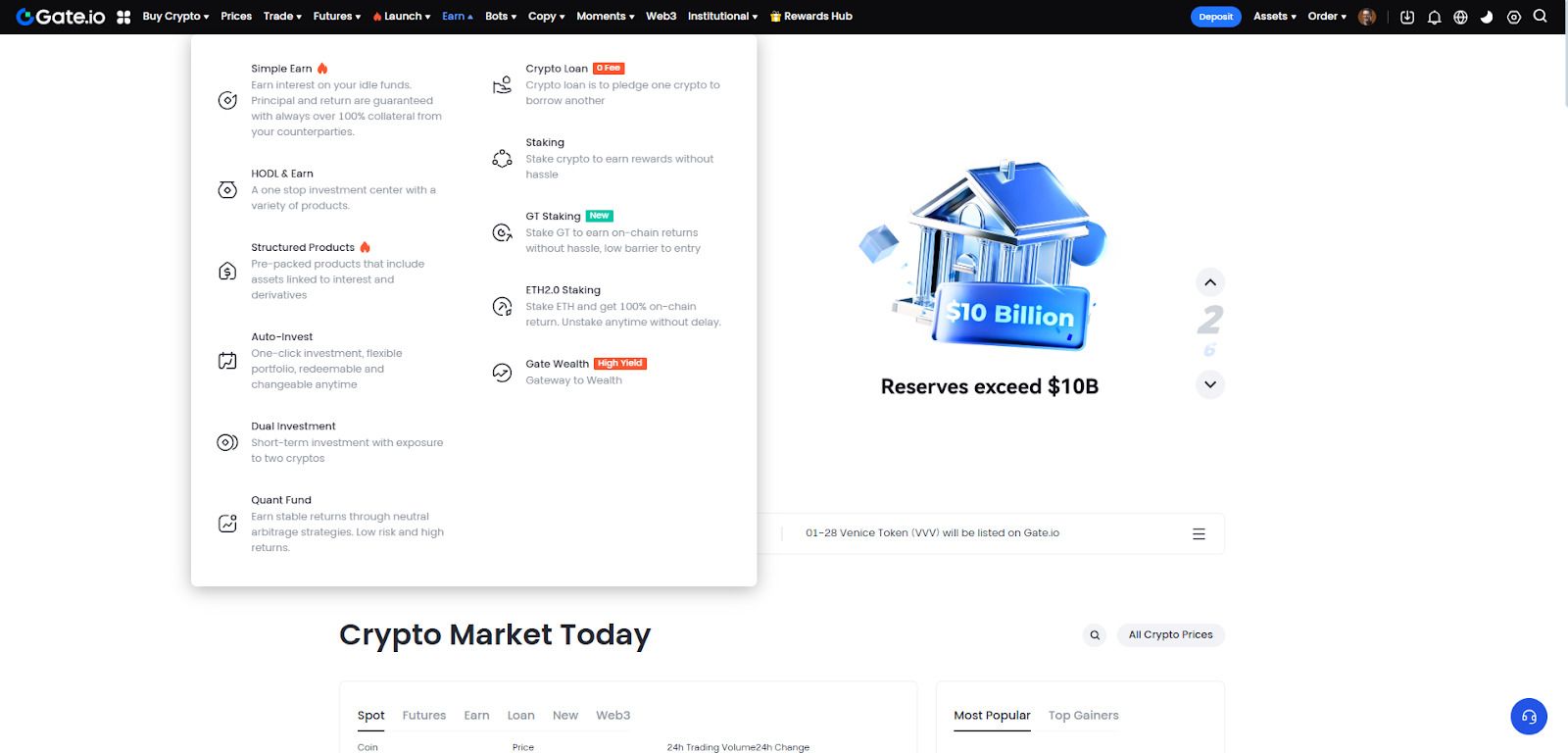 b) 访问Gate.com仪表板上的“Earn”板块,并点击“加密货币带宽”(Crypto Loan)。
