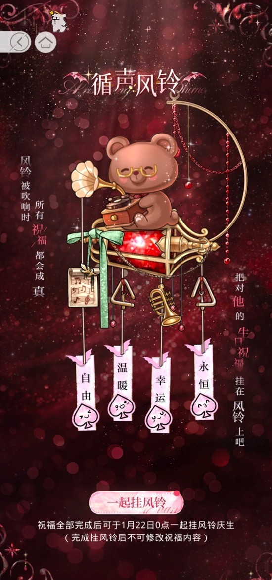10次心曲和弦关卡,收到1次风铃回复,解锁剧情一次。