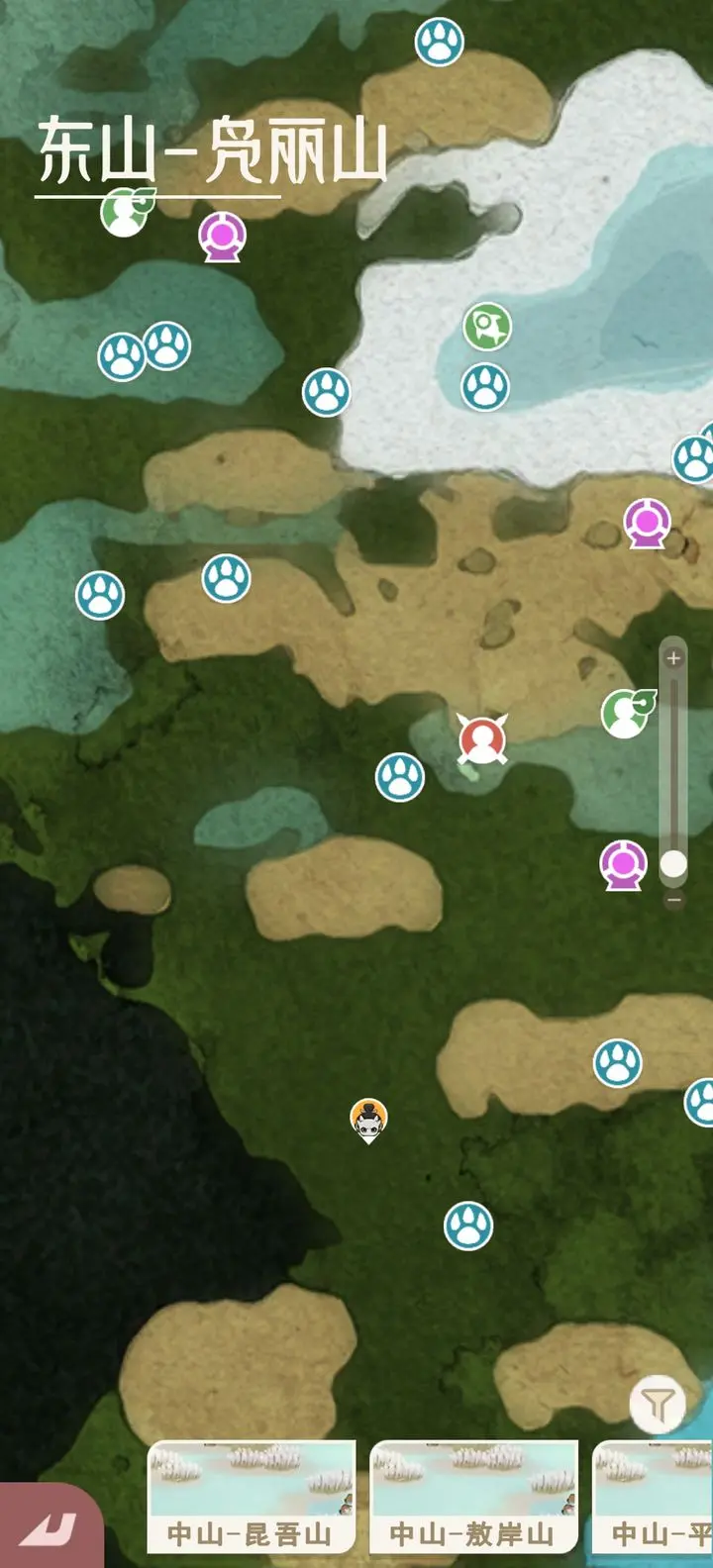 山海进化录五座神山分别位于中山-敖岸山、中山-平逢山、东山-凫丽山、东山-涂山、中山-孟门山。下文为大家列举这五座神山的具体位置方向详情内容!