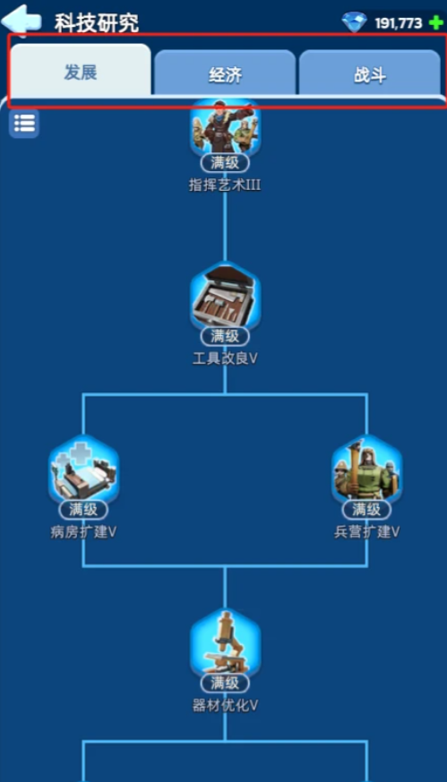 优先级:器材优化>工具改良>训练器材>兵营扩建>病房扩建>包扎术,先延伸科技树,把指挥艺术给点了,然后按照优先级点。