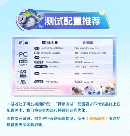 伊莫挥爪测试配置是什么很多旅行者不清楚伊莫挥爪测试配置需求,其实官方已给出底线与推荐两档,下面我们一起来看看伊莫挥爪测试配置是什么。
