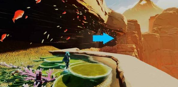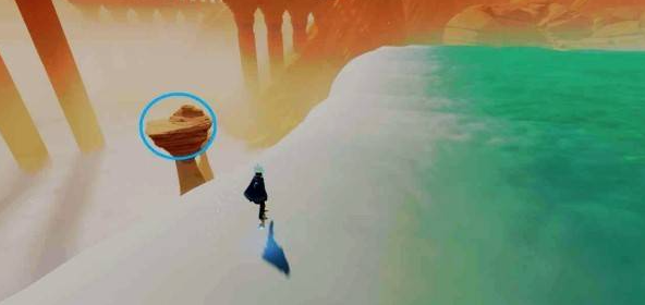 返回主区域利用锁链或海草来到右侧悬崖,在即将进入中间的大型区域之前,悬崖上的小沙地里可以看到贝壳。