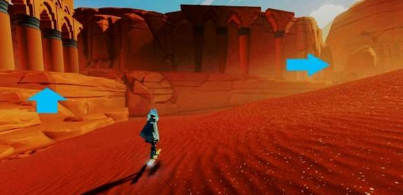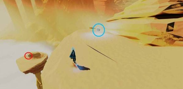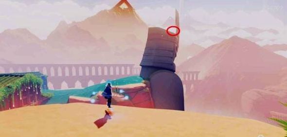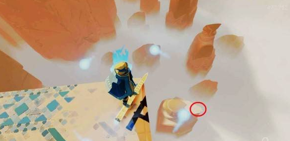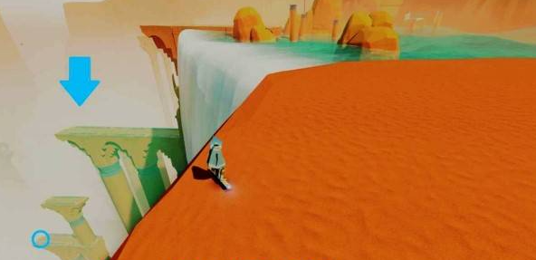 返回建筑外面向锁链通往的方向,往左下方看到区域边缘有两根比较矮的石柱,加速跳到近处的石柱上就能看到贝壳,跳到第二根石柱按□键可以返回主区域。