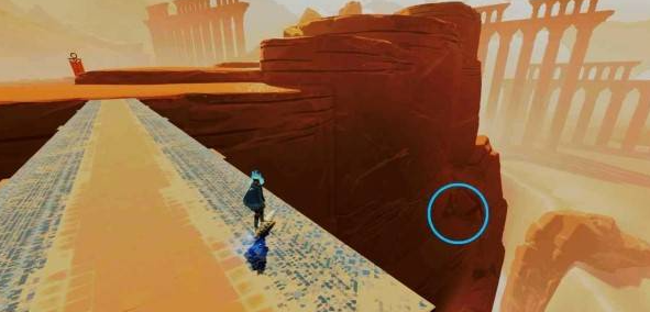 沿着同一个悬崖往前走到有几个较低的石头平台处,最底层的石头平台上有只青蛙,继续往下看可以看到一个雕像,跳到雕像所在位置,旁边小悬崖上可以看到这个贝壳。
