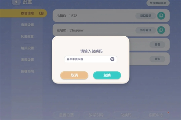 2、在设置页面的下方找到兑换码输入框