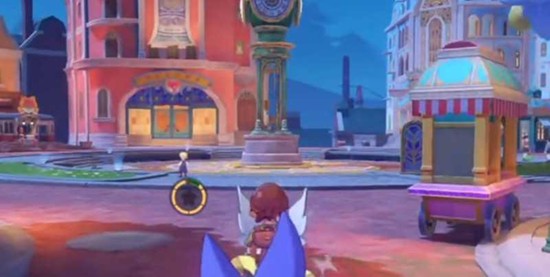 登上平台后,便进入了收集环节。屋檐周围分布着5个蓝色的水晶球,必须全部收集齐全才能触发秘境入口。第一个水晶球在绿色房屋的正前方;第二个在右侧住宅的屋檐边缘;第三个放置在右手边的长条座椅上;第四个位于广场中央的基座旁边;最后一个则是在旋转门右侧机器人模型的左肩部位。按照这个顺序寻找,就能集齐所有蓝色水晶球。