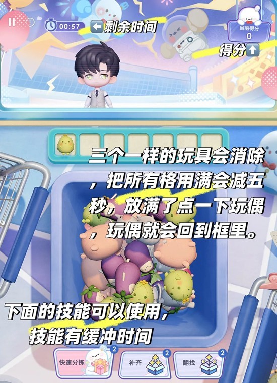 速速分拣:消除任意玩偶,重点消除左上角目标可延长游戏时间