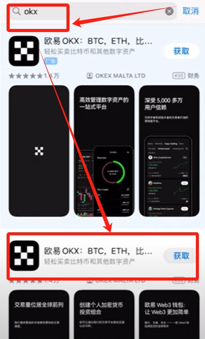 在App Store中找到OKX应用,点击获取按钮开始下载安装。