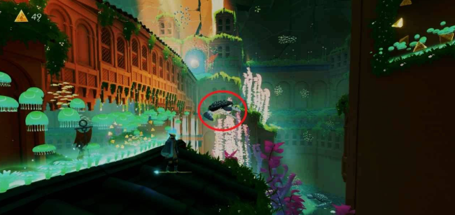 激活建筑顶部解锁通关大门的主要水源点后,鲨鱼雕像周围会出现一些龟形生物,注意关卡前段的相似生物不会计入奖杯/成就。