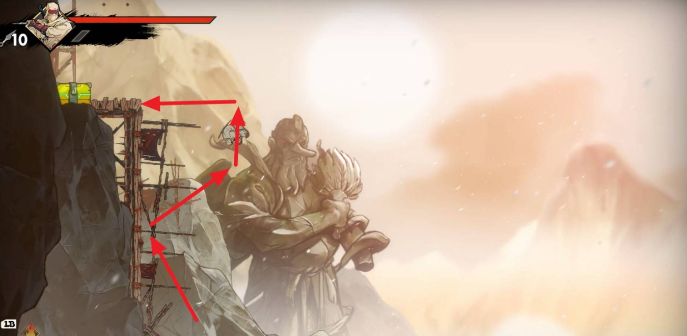 1、来到山岳这张地图,起始点左上方平台可找到一个金钱宝箱,先跳到左墙然后往右边折返跳,半空往左跳一次再用翻滚即可。