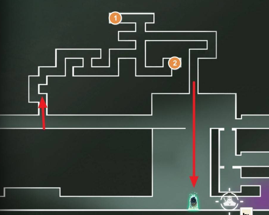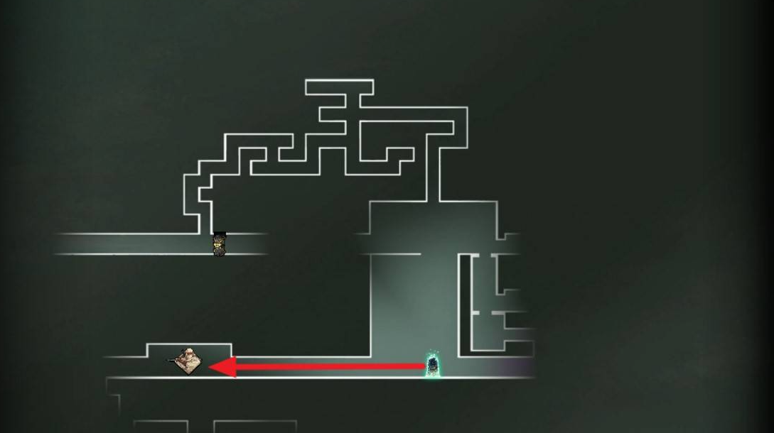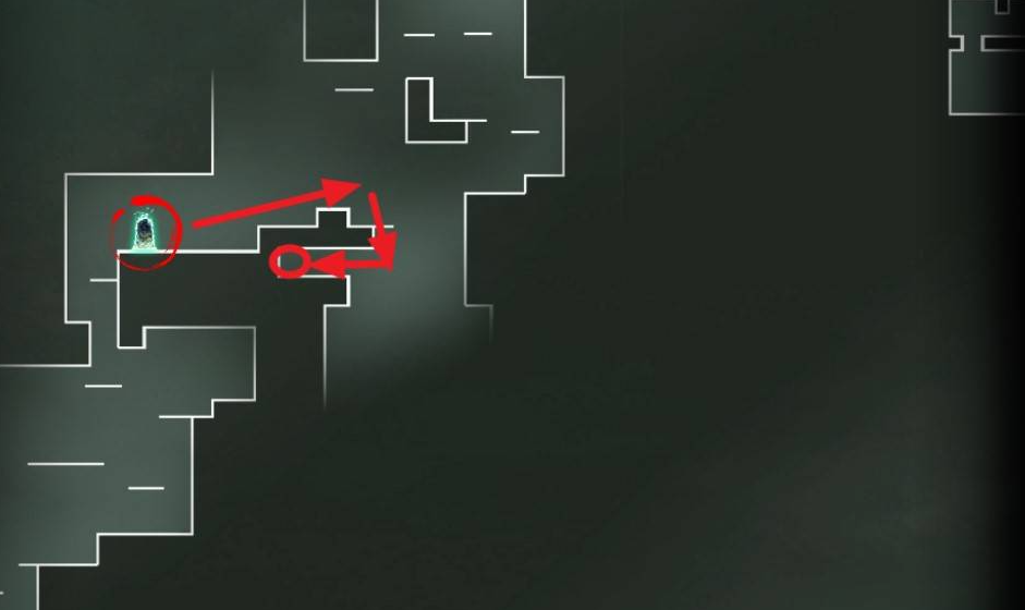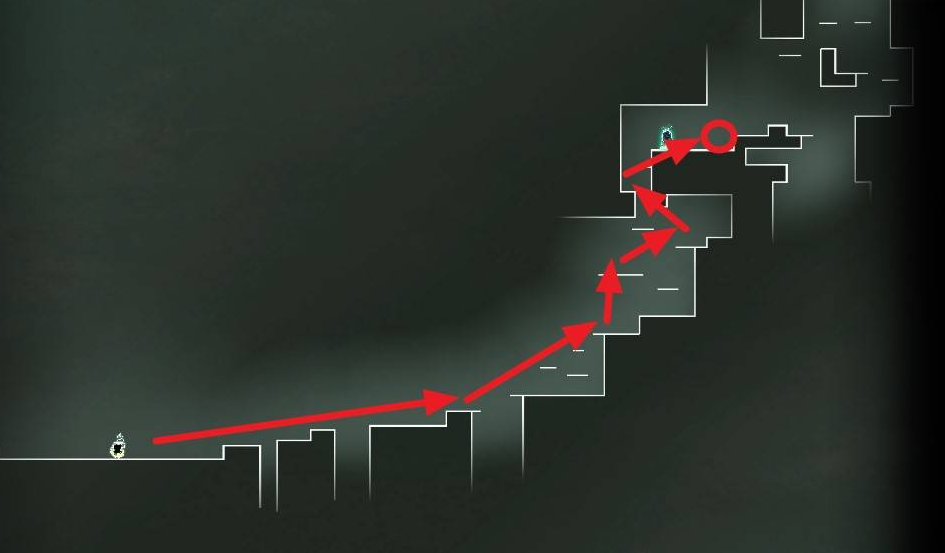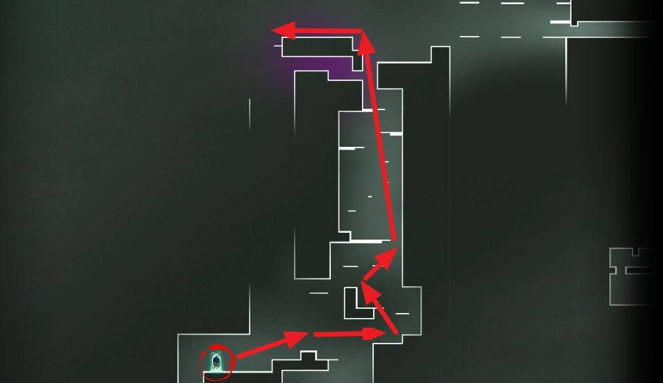 5、从精英b队的位置沿着下图路线往右走到头再逐级往上走到顶,顶部左侧走到边缘。