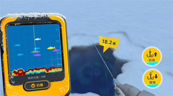 冰钓的玩法很有意思,最主要是放线诱鱼咬钩的过程,要用探鱼器看出水下鱼品质的分层,根据自己的目标调整鱼饵位置,来定向地钓到对应品质的鱼。