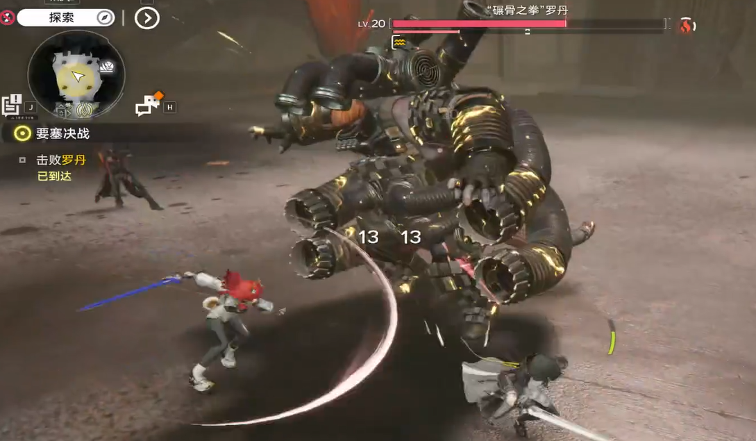 战斗初始阶段,罗丹会以“重踏震击”起手:高抬右腿猛踩地面,随即跃至半空并垂直下坠,落地区域将生成明显红色预警圈。该技能判定范围固定,留有充足反应时间,横向位移即可规避。随后进入基础连段——右手直拳、左手升龙勾拳、双掌拍地三连击。当其双臂张开呈环抱姿态时,即为“强袭擒抱”前摇,需立即后撤或侧闪。值得注意的是,所有攻击前后均存在约0.8秒的动作停顿,此为安全输出窗口;另需留意其偶发的向右短距跳跃,该动作仅用于调整站位,不附带伤害判定。