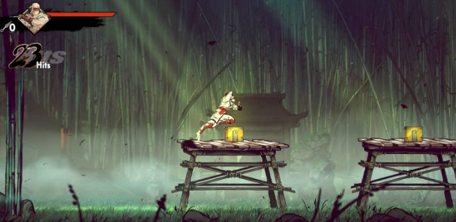 5、两个高台上各有一个黄色箱子,攻击箱子可获得一定的补给,可回复手里剑与一定的血量