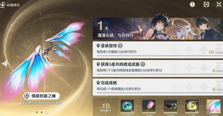 【长迹伴行】为长期成长型回馈系统。玩家通过完成伴行任务积累积分,达成指定档位后可兑换包括10次常驻抽取、新印章、限定称号、10次限定抽取及典藏级滑翔翼皮肤在内的多项奖励。值得注意的是,获取5星角色的回音频段与5星武器均计入积分体系。后续版本中,该系统将持续扩展可兑换礼品范围,并同步提升积分上限。