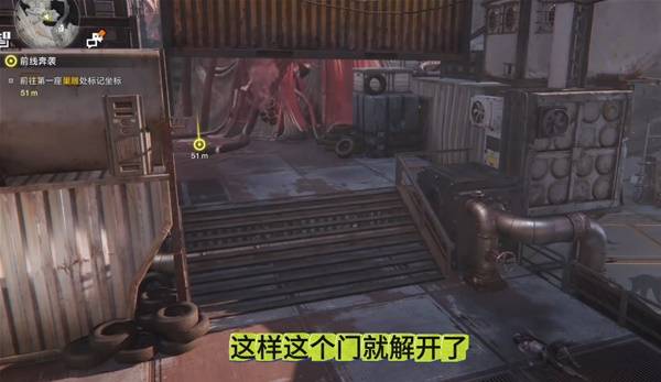 开关在集装箱左边这个通道里,用炸弹炸开箱子就能进去。