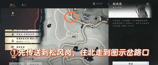 先传送到松风岗 ,往北走到图示地点
