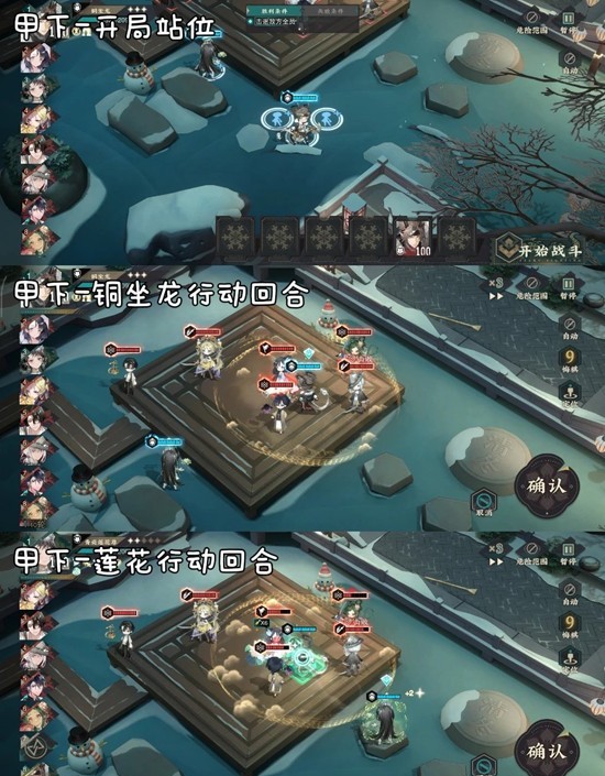 ②天球走到最前边,锁着三角形中间的地块开大召球→走到后边开职业打小宋(暴击小宋就死,不暴击也不影响)