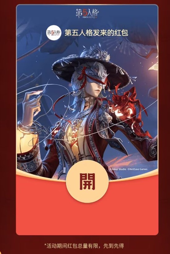 2月3日至2月15日期间,访客上支付宝APP搜索"心愿聚福",选择第五人格注入心愿值,有机会获得五福主会场奖励。当心愿值目标达成后,将在2月16日至2月18日期间不定期点亮第五人格全国多城线下商场大屏,实现真正意义上的破圈传播,让第五人格的身影闪耀在现实都市的夜空之中。