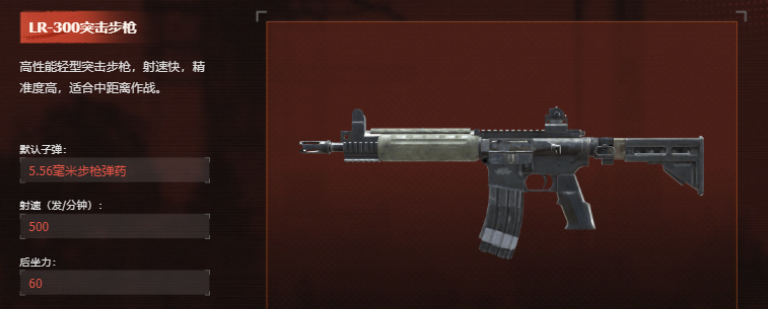 轻量化突击步枪,理论射速为500发/分钟,基础后坐力值为60,标准弹匣容量30发,精度表现均衡。在中距离交火带具备持续压制能力,射击节奏易于掌控。获取方式为击败精英单位掉落关键部件,或通过工作台完成组装合成。