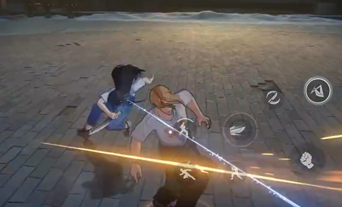 基础普攻共四段:首段为前推掌击;第二段先以刀锋前划,随即反手横斩;第三段快速突进后腾空踹击;第四段将目标高踢浮空。整套动作节奏紧凑,衔接流畅,具备稳定控场与起手能力。