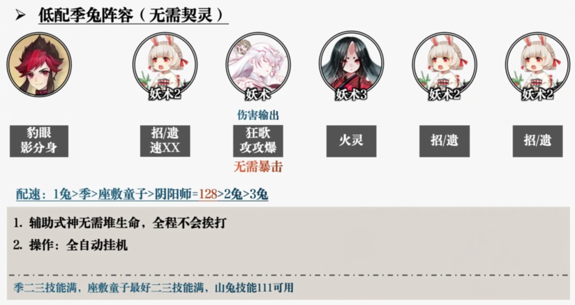 阴阳师浮世游庭活动退魔阵容中可以根据自身情况来自由选择当前的阵容,高配阵容、低配高效阵容和低配季兔阵容、难民阵容列举给大家来自由选择,具体的各阵容的搭配方案内容见以下正文!