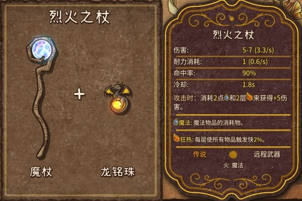 3、烈火之杖(传说,火,魔法,远程武器):魔杖+龙铭珠