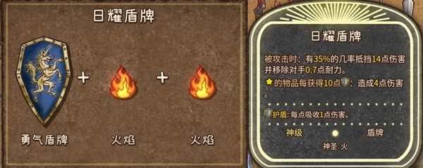7、日耀盾牌(神级,神圣,火,盾牌):勇气盾牌+火焰+火焰