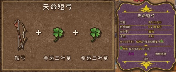 6、天命短弓(史诗,自然,远程武器):短弓+幸运三叶草+幸运三叶草